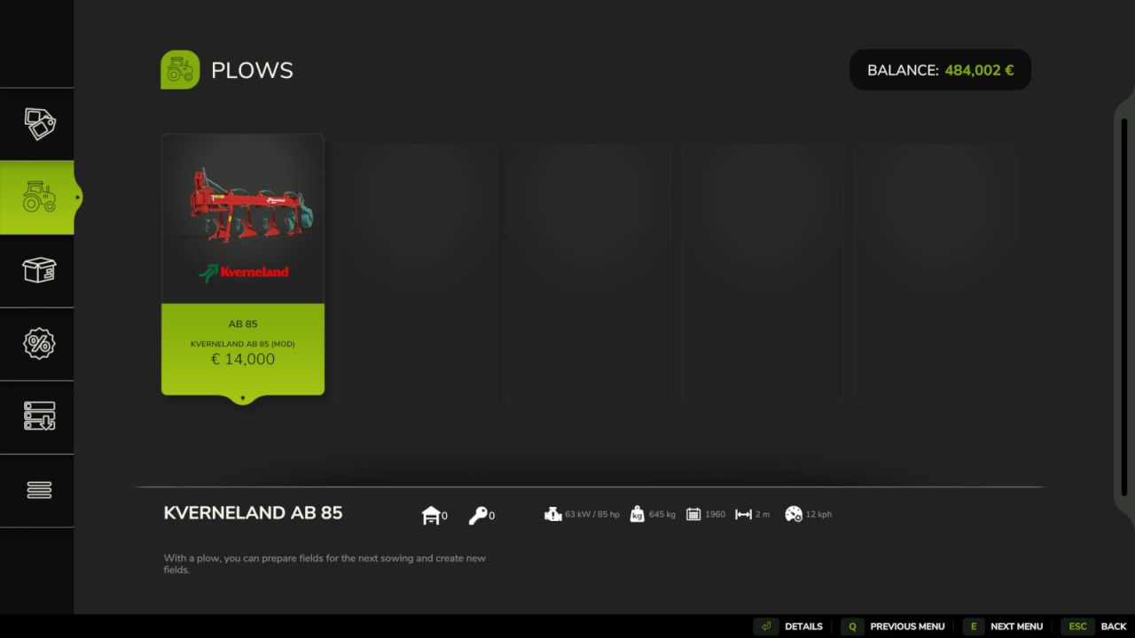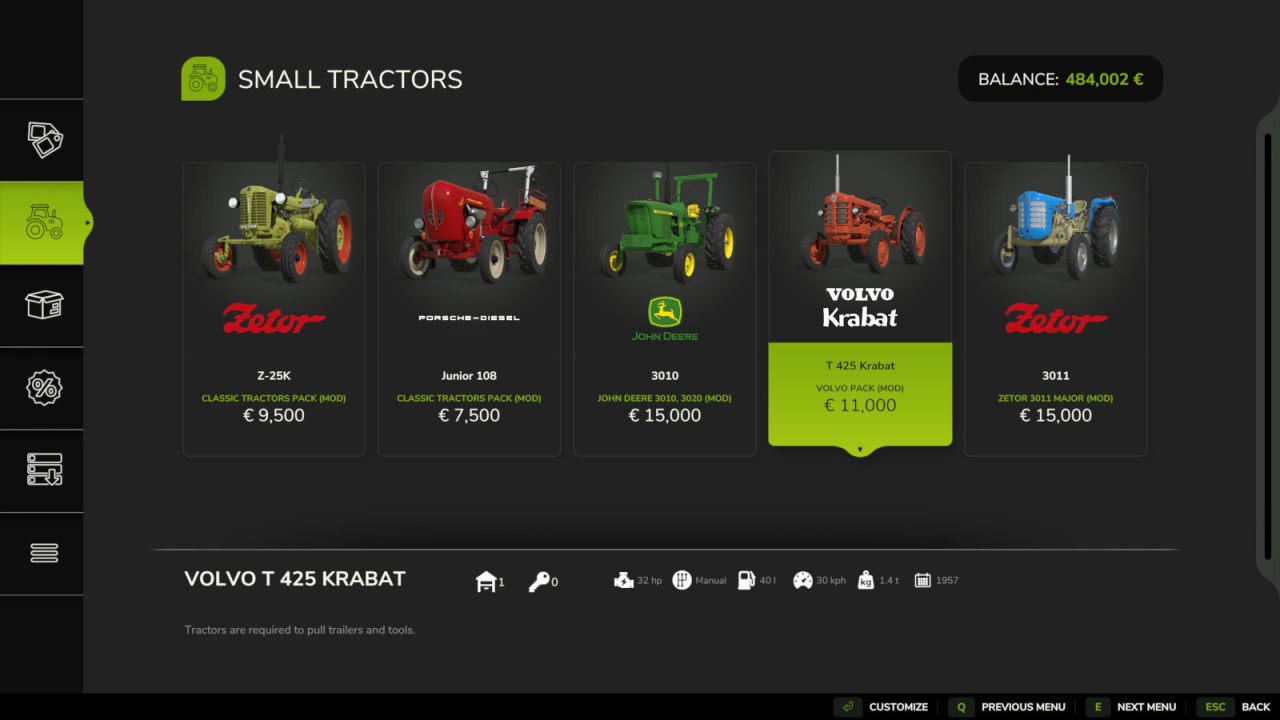 Ce mod, offrant une personnalisation poussée pour répondre à vos besoins spécifiques, limite vos achats aux véhicules disponibles au moment de votre partie. Dès 1950, vous pouvez progresser, des tracteurs de moins de 50 chevaux et des charrues à deux sillons aux machines agricoles modernes et performantes.