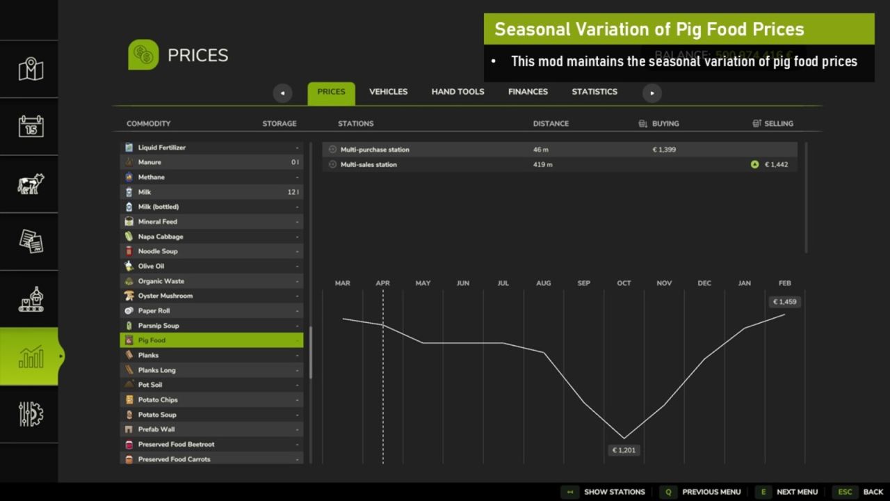 REMARQUE : Ce correctif est recommandé si vous utilisez « BigBags Everywhere » avec « Seasonal Prices ». Cependant, ce mod fonctionne également seul et vous permettra de faire apparaître de la nourriture pour cochons sous forme de grands sacs, même sans « BigBags Everywhere ».