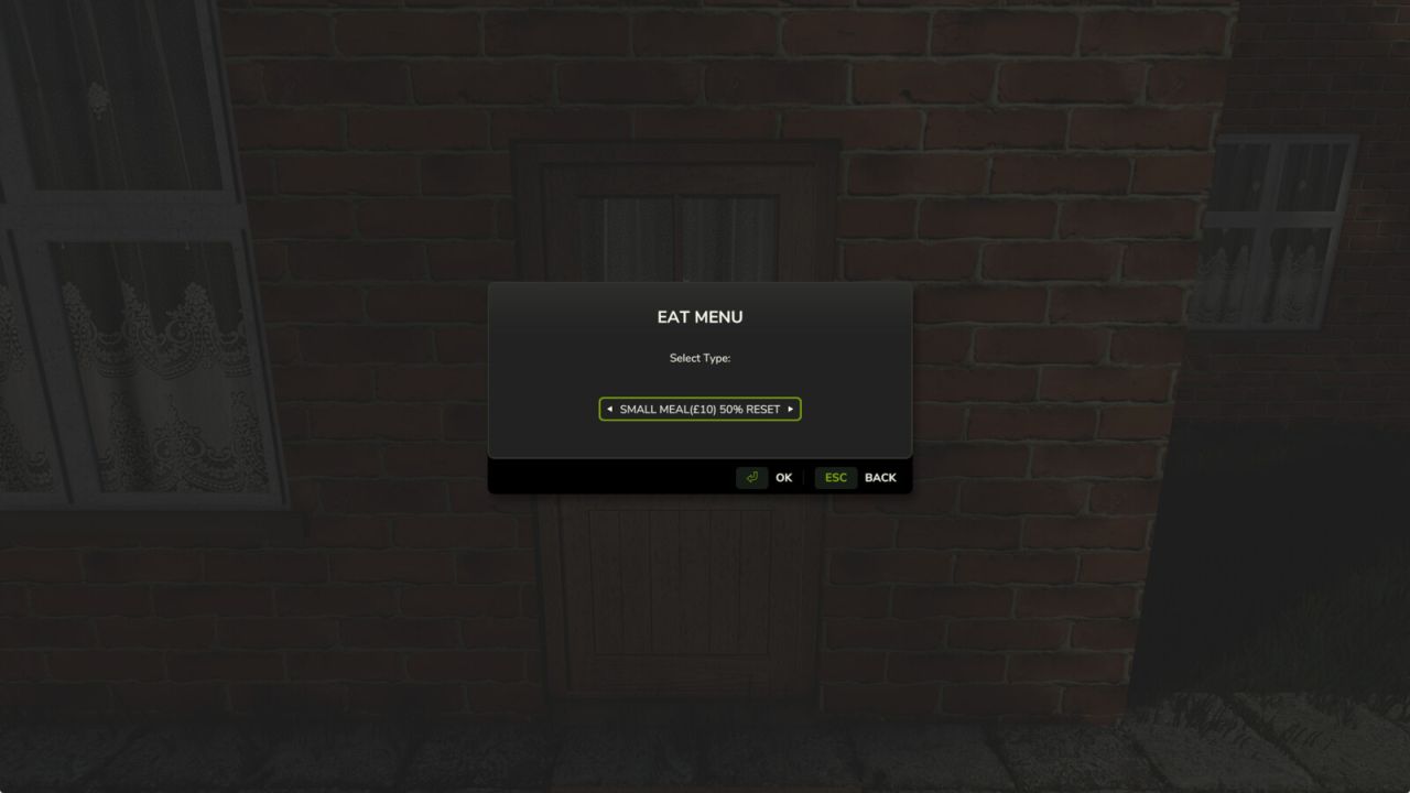 – Menu Repas (Repas complet / Petit repas / Collation légère) avec des temps de recharge basés sur la difficulté