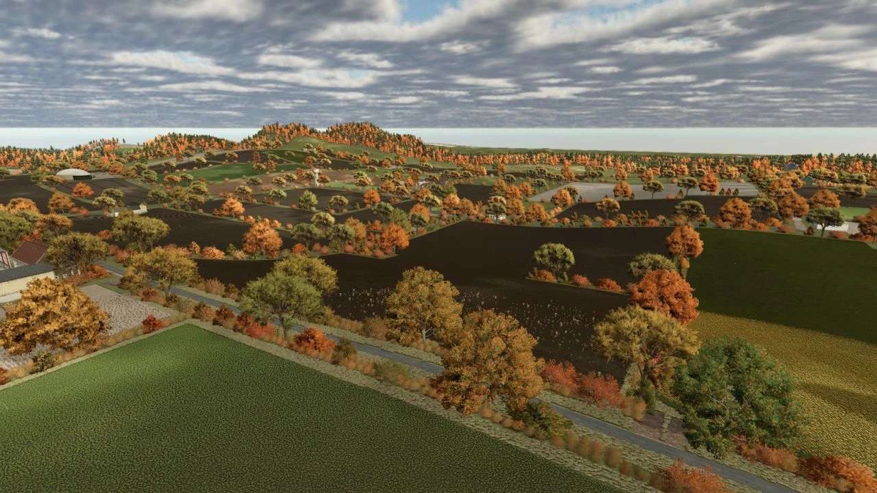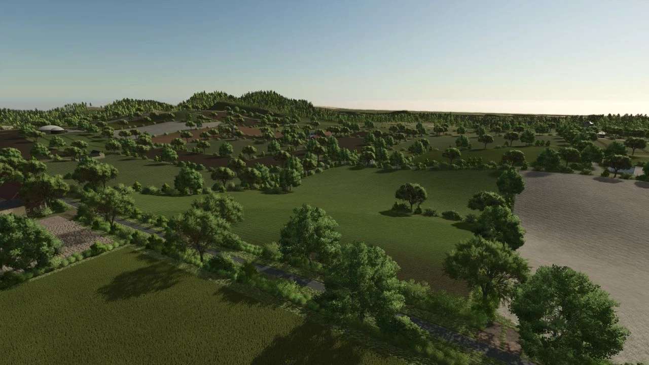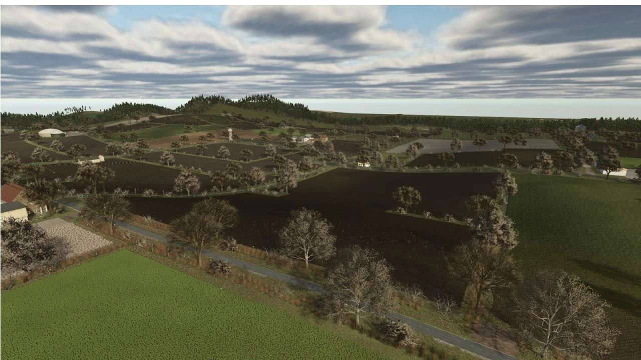 La carte propose une agriculture à échelle humaine, avec des parcelles de 0,5 à 4,5 hectares, idéales pour les engins agricoles de petit gabarit et une progression réaliste. Les haies structurent le paysage, délimitent les champs et renforcent cette atmosphère de bocage typique de l'Ouest.