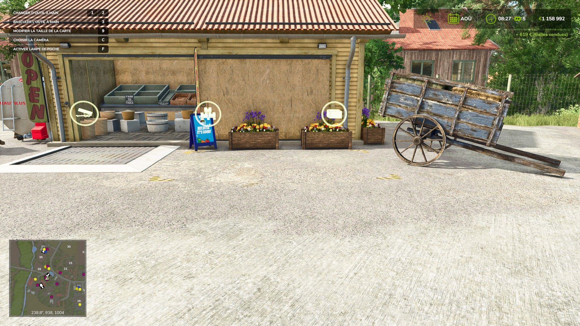 Vous pouvez vendre presque tout, y compris les récoltes du DLC Highlands Fishing Expansion et du pack Straw Harvest (granulés de paille et de foin), ainsi que toutes les balles (rondes ou carrées).