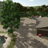 Il comprend également un espace agricole avec des silos et des hangars de ferme.