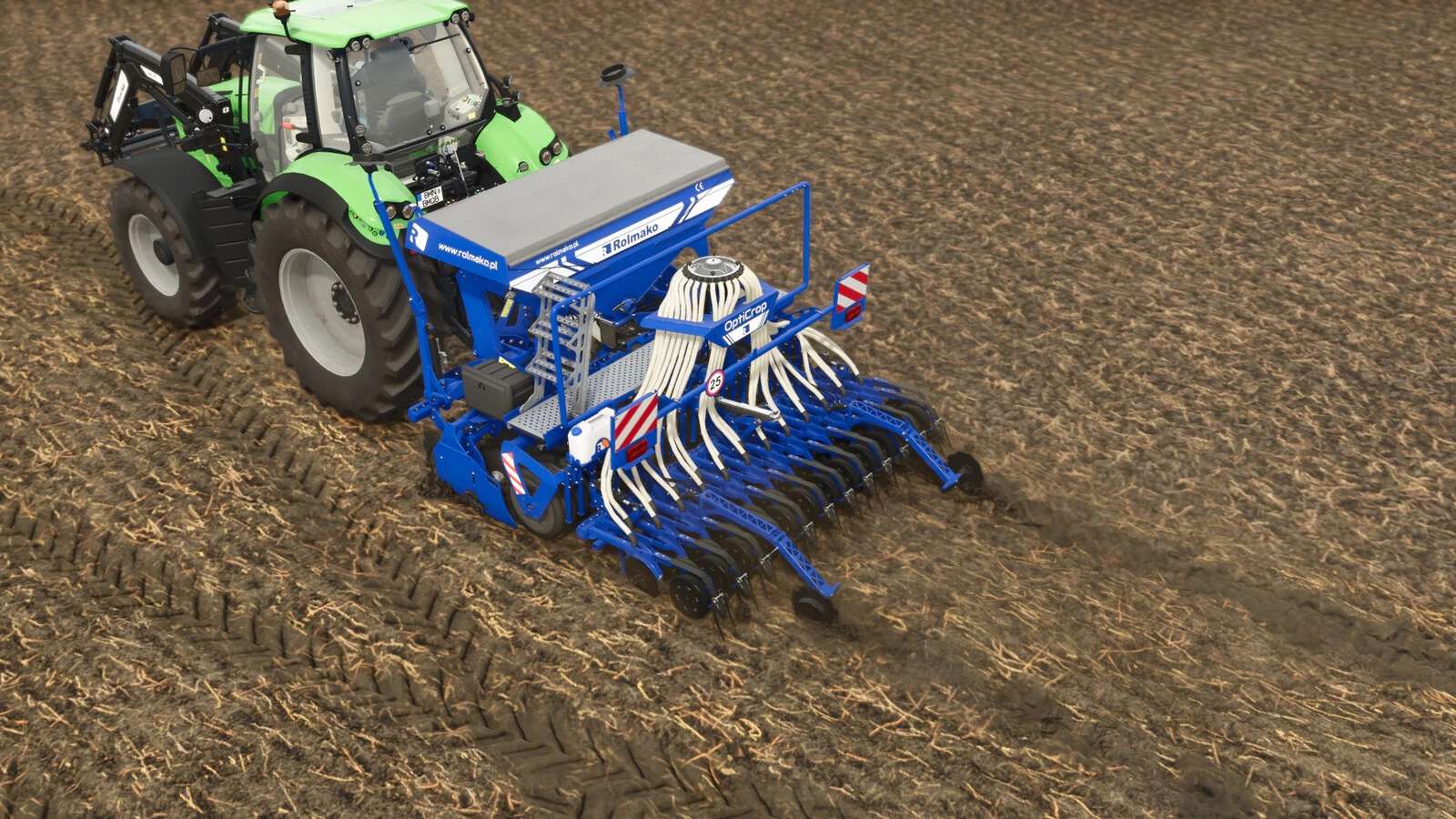 Le Rolmako OptiCrop est un nouveau modèle conçu pour 2025. Ce semoir permet de travailler et de semer simultanément, garantissant ainsi un gain de temps.
