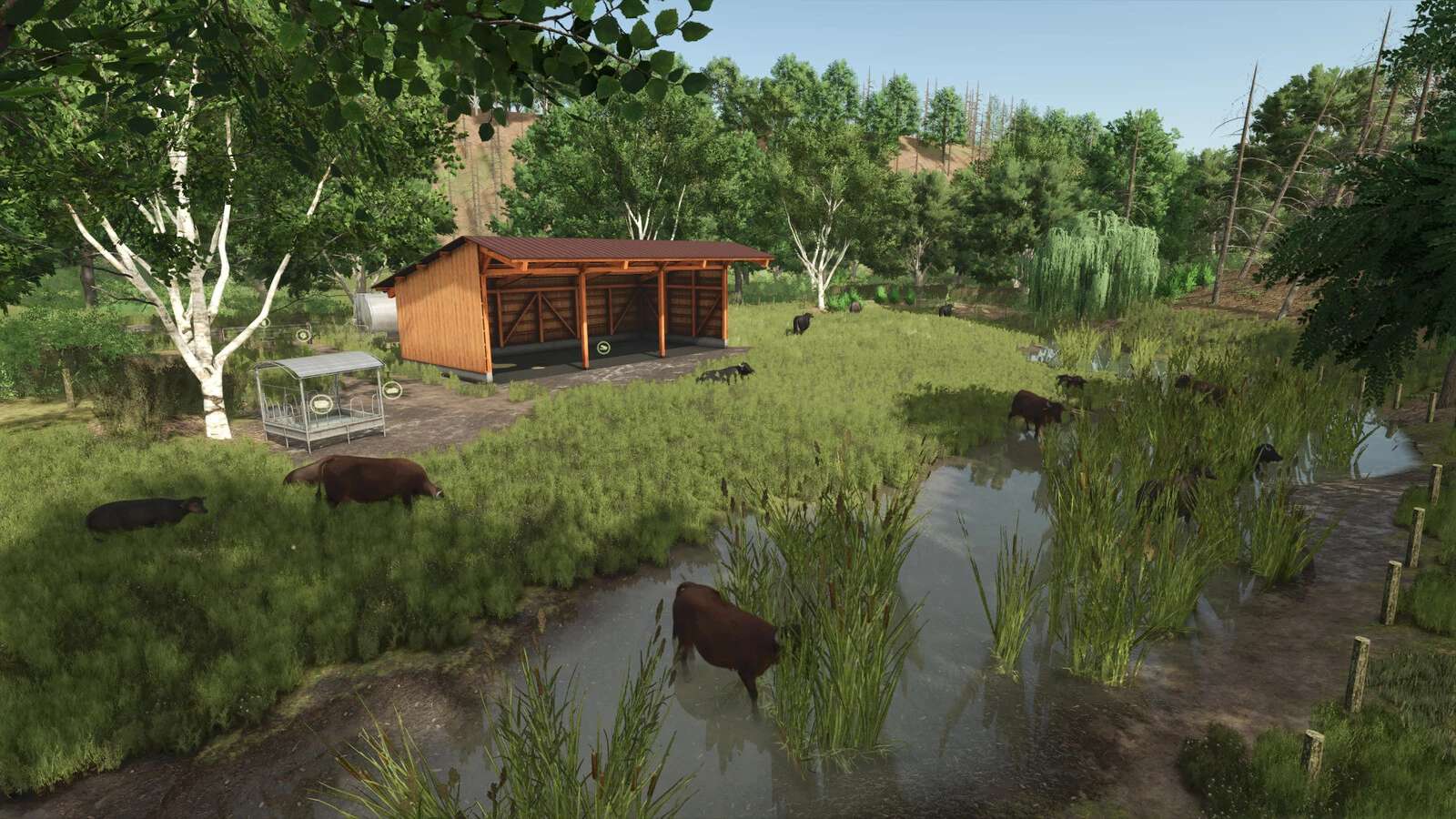 – Plusieurs pâturages pour vaches, chevaux, moutons et bovins des Highlands + pâturage pour buffles d'eau