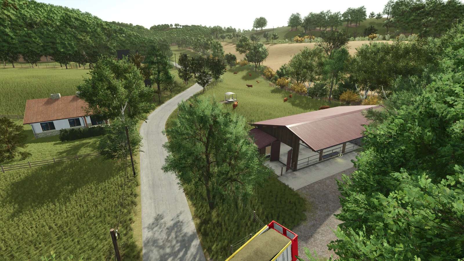 – Nouvelles zones : la forêt d’« Alter Stolberg » au sud-est avec une carrière de calcaire + une zone au nord-ouest près de Neustadt avec des vaches Highland, qui sont également présentes dans la réalité (même sans DLC).